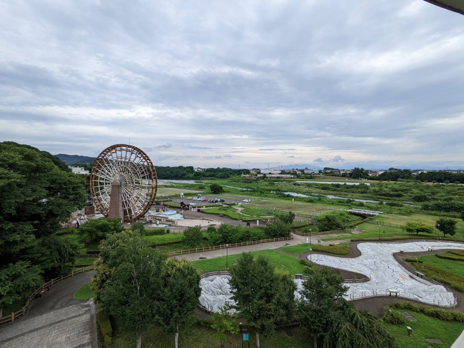 全然下調べをせずに行ったのですが、入口にある巨大な水車は日本一の大きさのようで直径が24.2mあるのだとか。