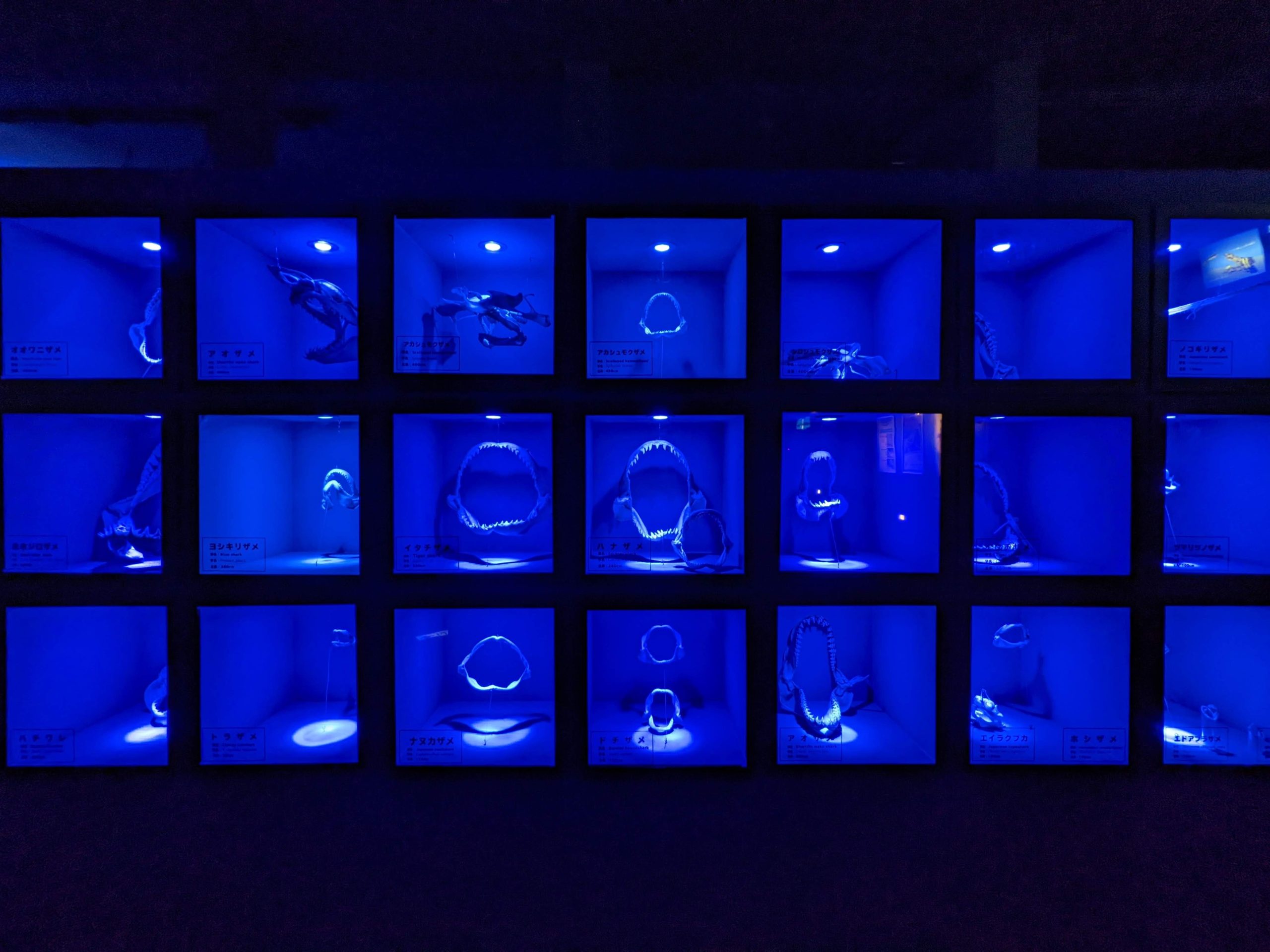 特にサメコーナーが嬉しい。サメ好きなのはありますが。顎の骨をずらっと展示してくれてるのは壮観でしたね。