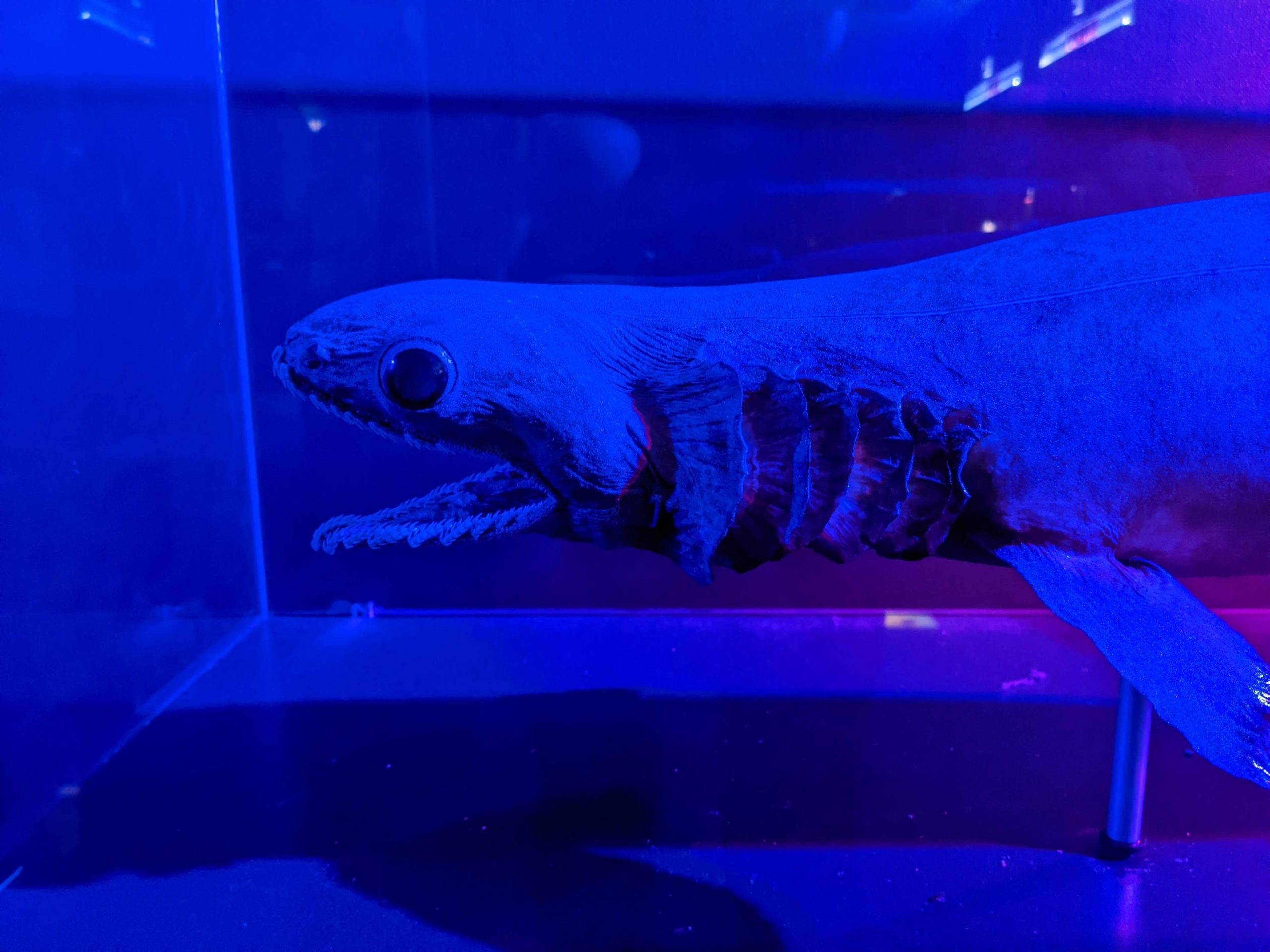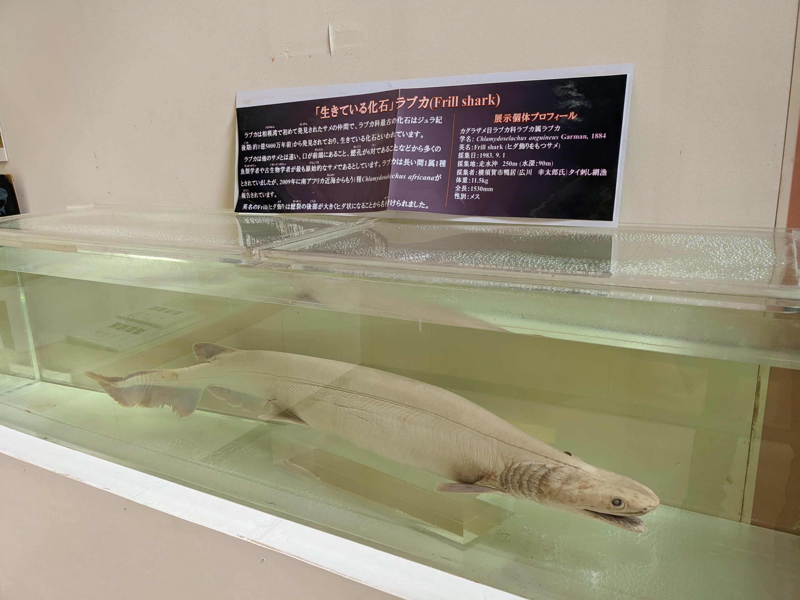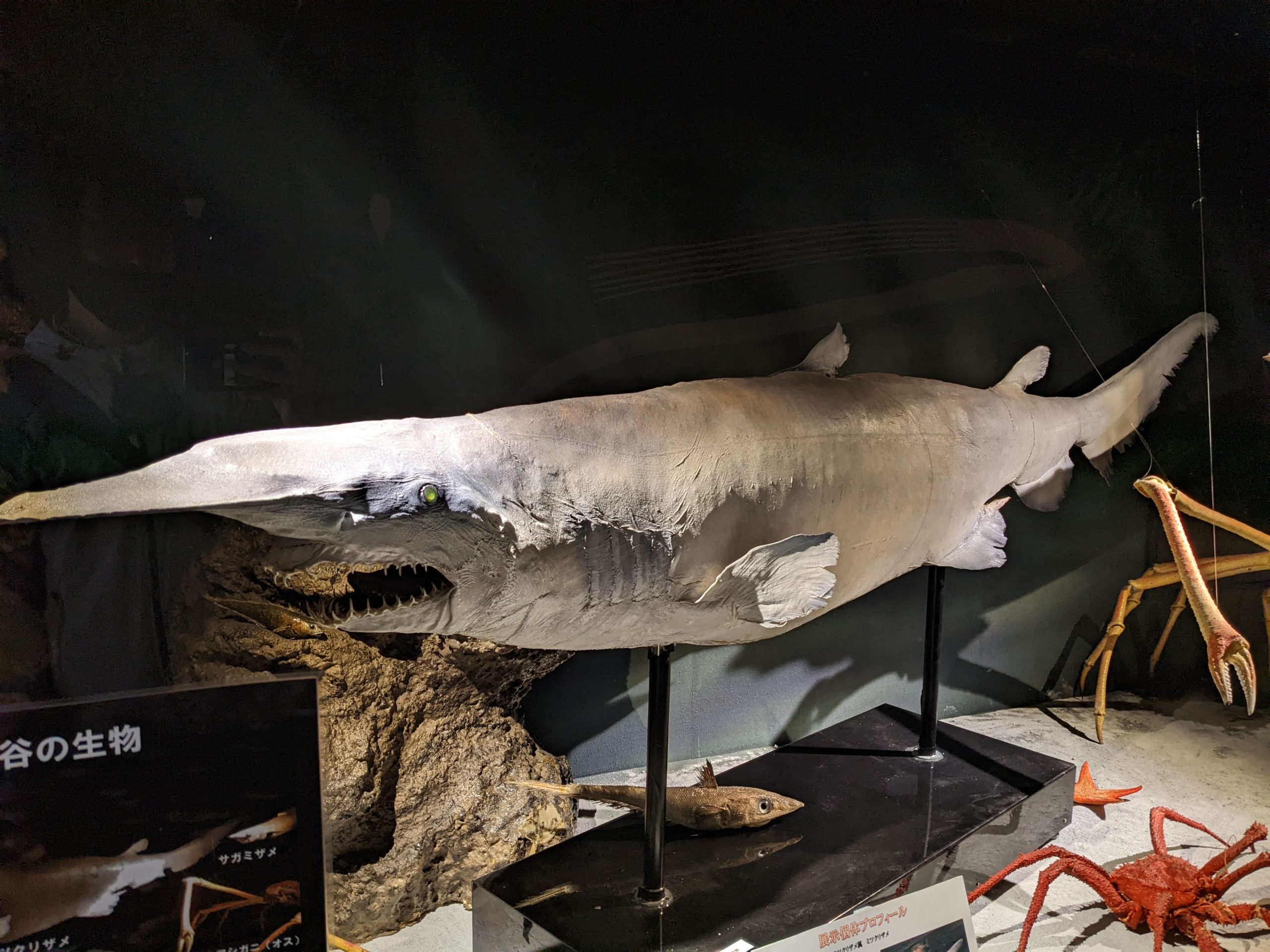標本や剥製の数が多く、サメの胎児(お腹がすごく丸い)は初めてみました!深海コーナーにいるラブカ。ラブカは好きなサメなんですが、ここで見られるとは思ってなくて嬉しくなっちゃいましたね〜。