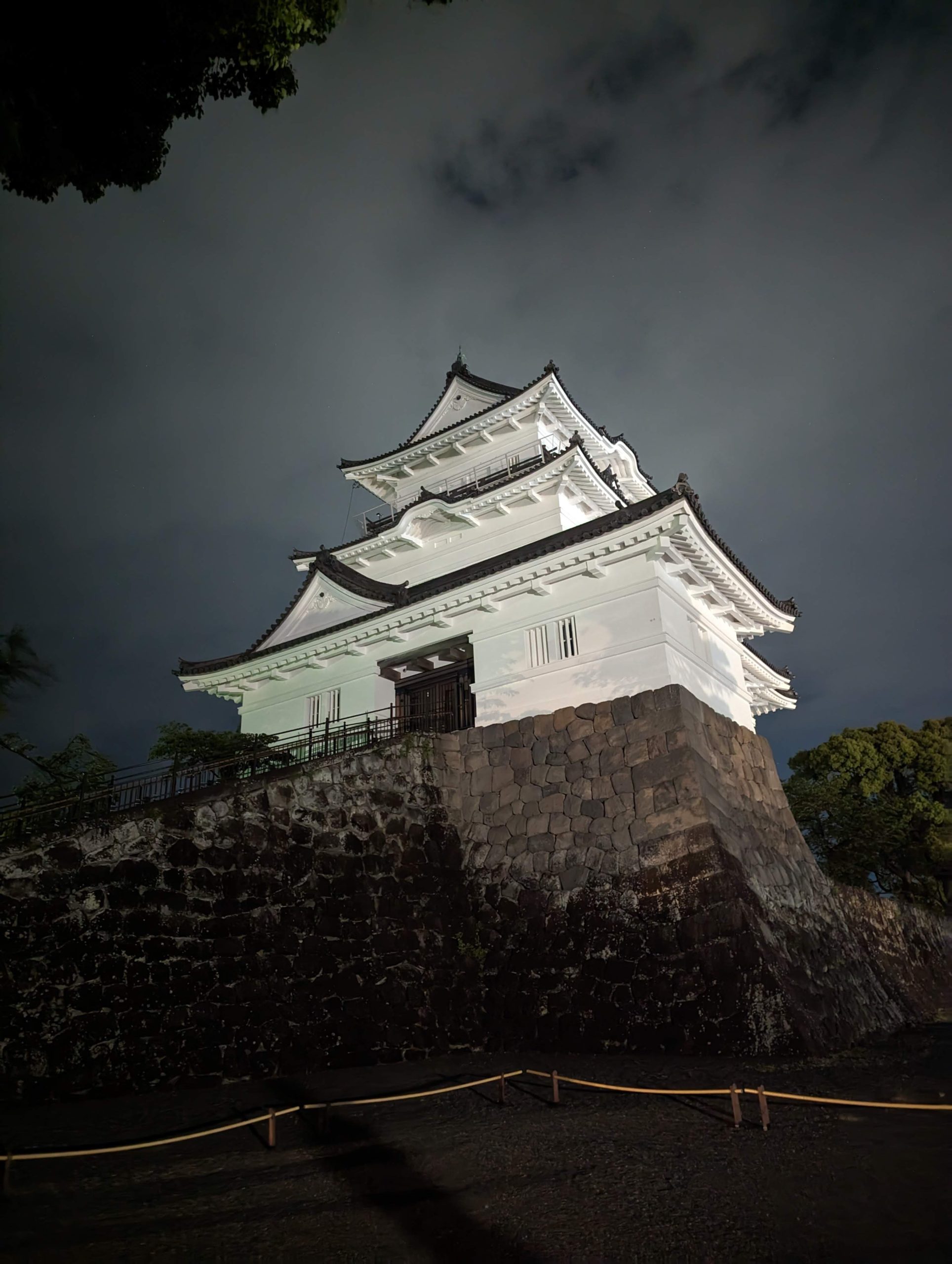 まったりすごしていたら、雨もやんだので小田原城を見てきました。夜のお城はライトアップはされていなかったもののなんとか見ることができました。