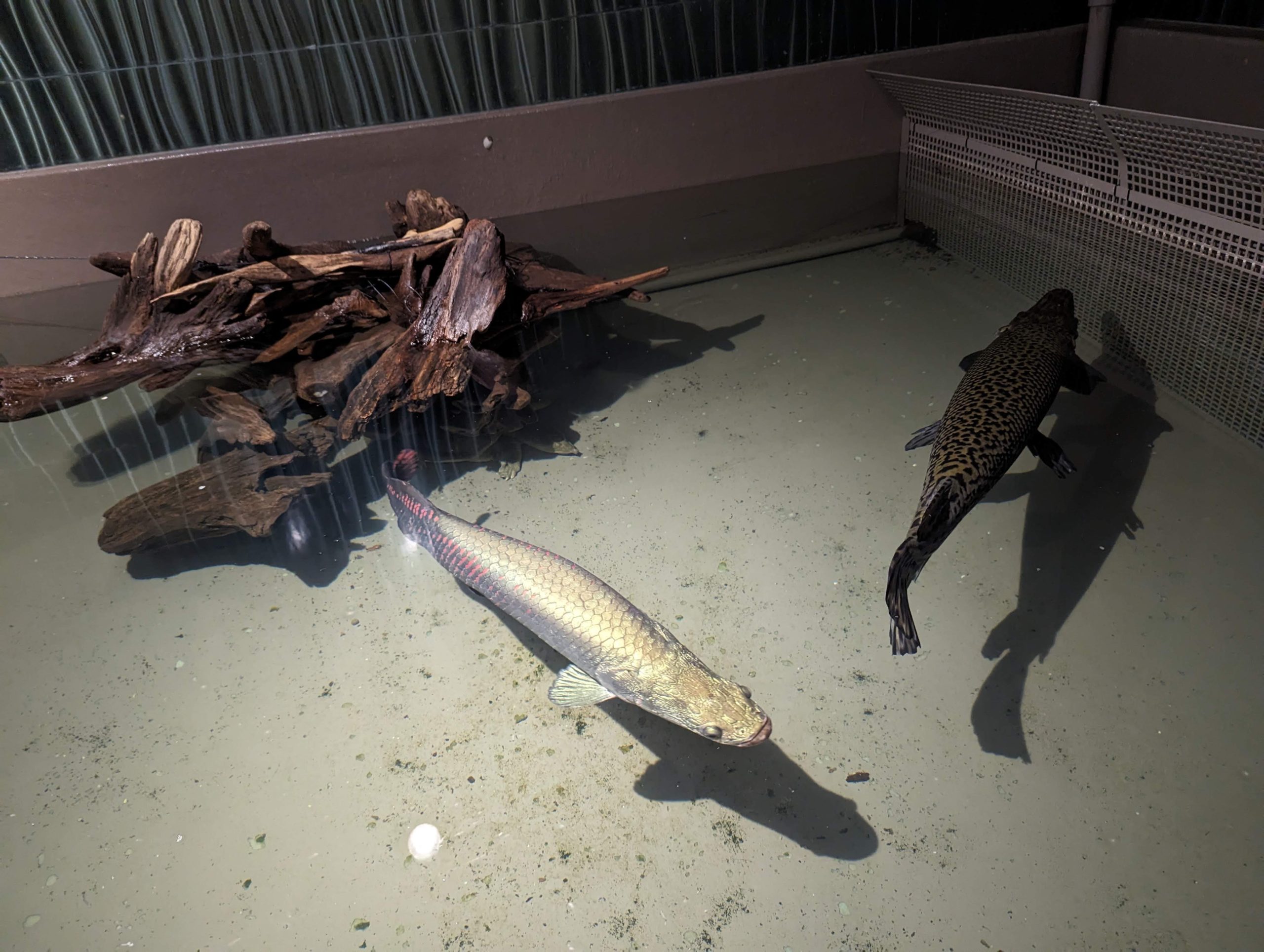 水族館部分は意外にも綺麗でもちろん、外の実際の海を見れる小窓がところどころあって魚がいるときもあります。海外の淡水魚ゾーンなんかはかなり好みでピラルクーなどを水槽の上から覗き込んだりできます。だいたい真横からしか見れませんからね。