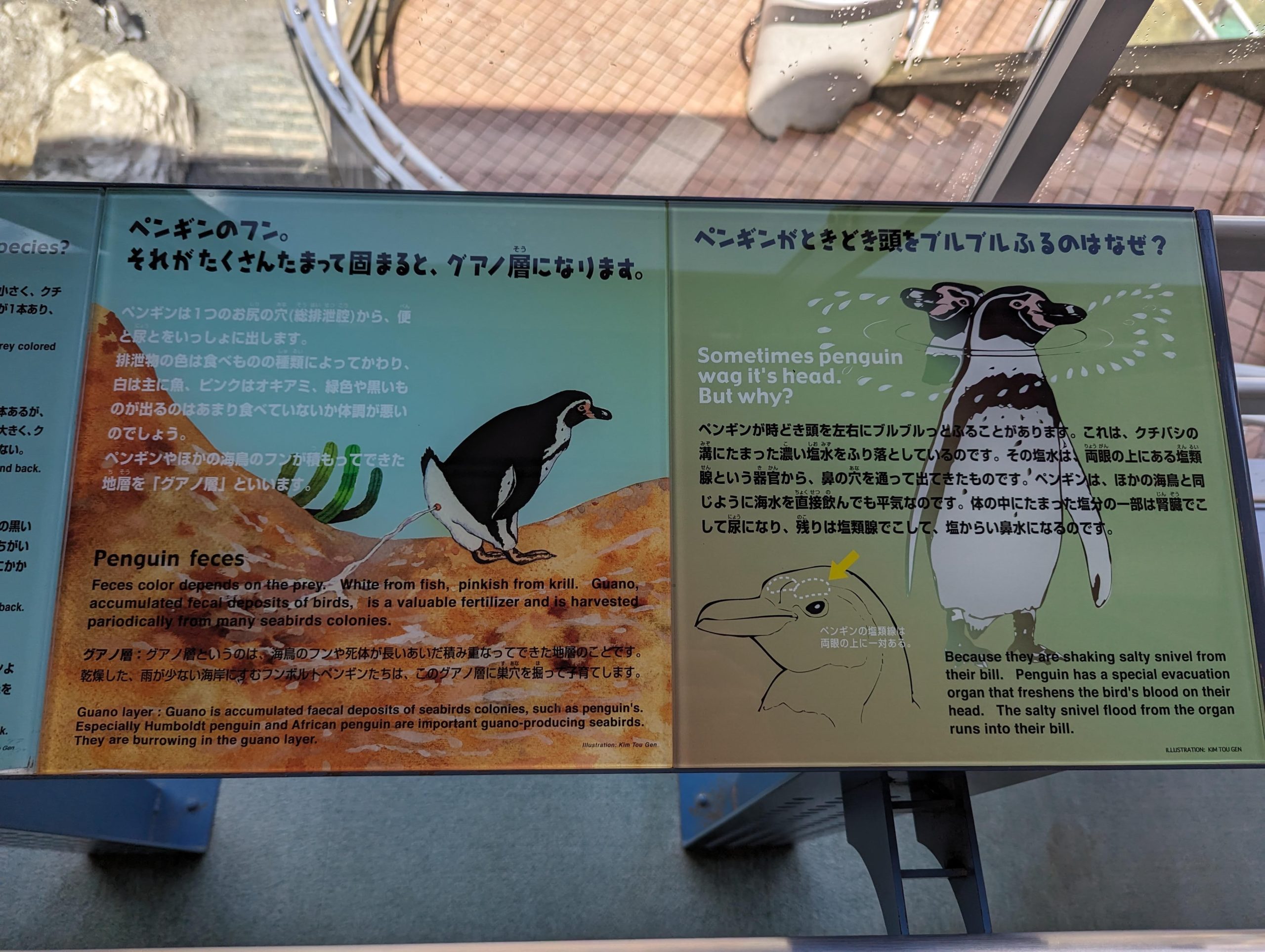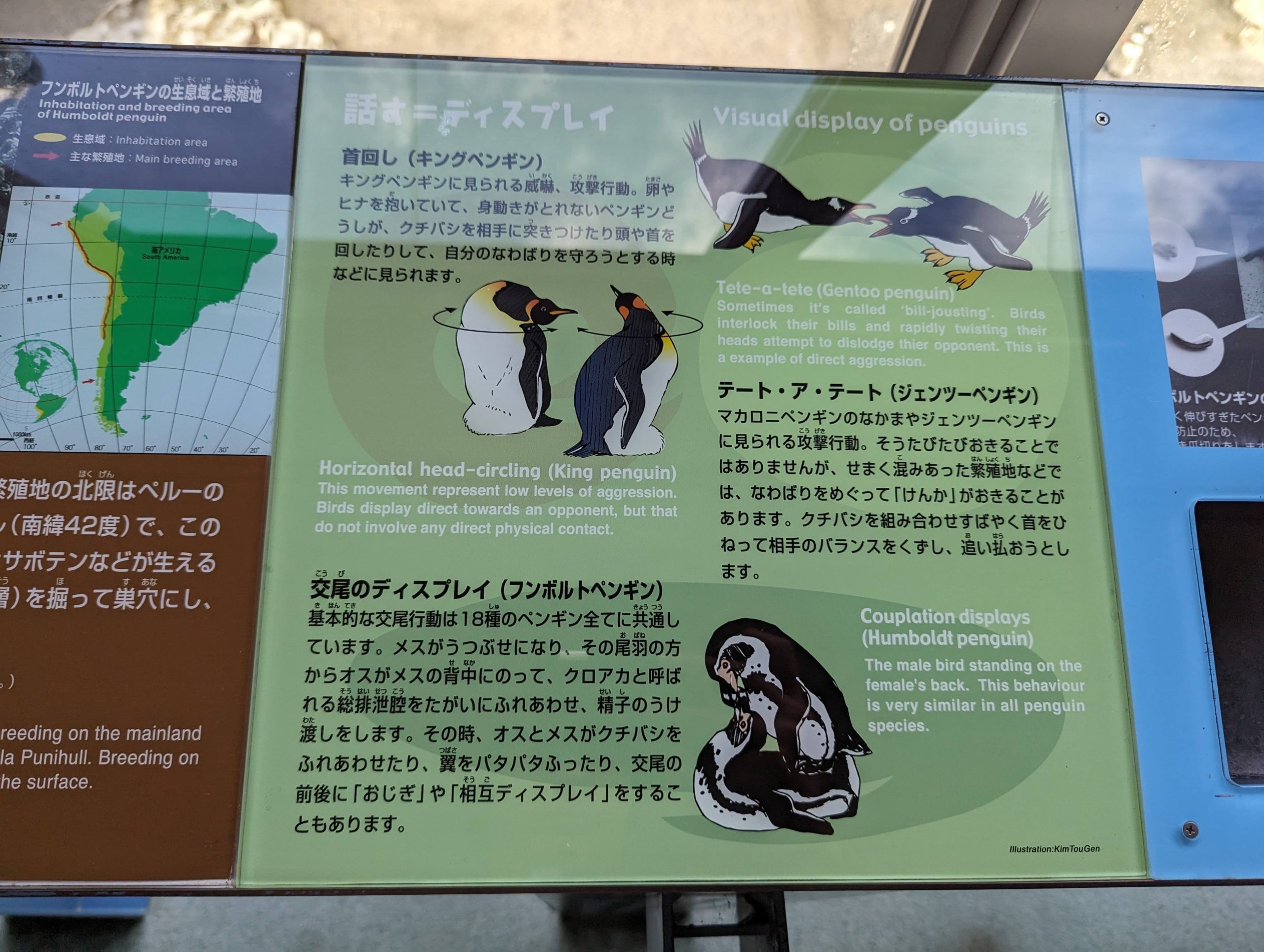 ペンギン、世界で18種類いるんですがそのうち9種類もこちらで飼育されてます。ペンギンの生体についての詳しい解説も随所に設置されていたり、ペンギングッズ集めたケースなんかもあります。