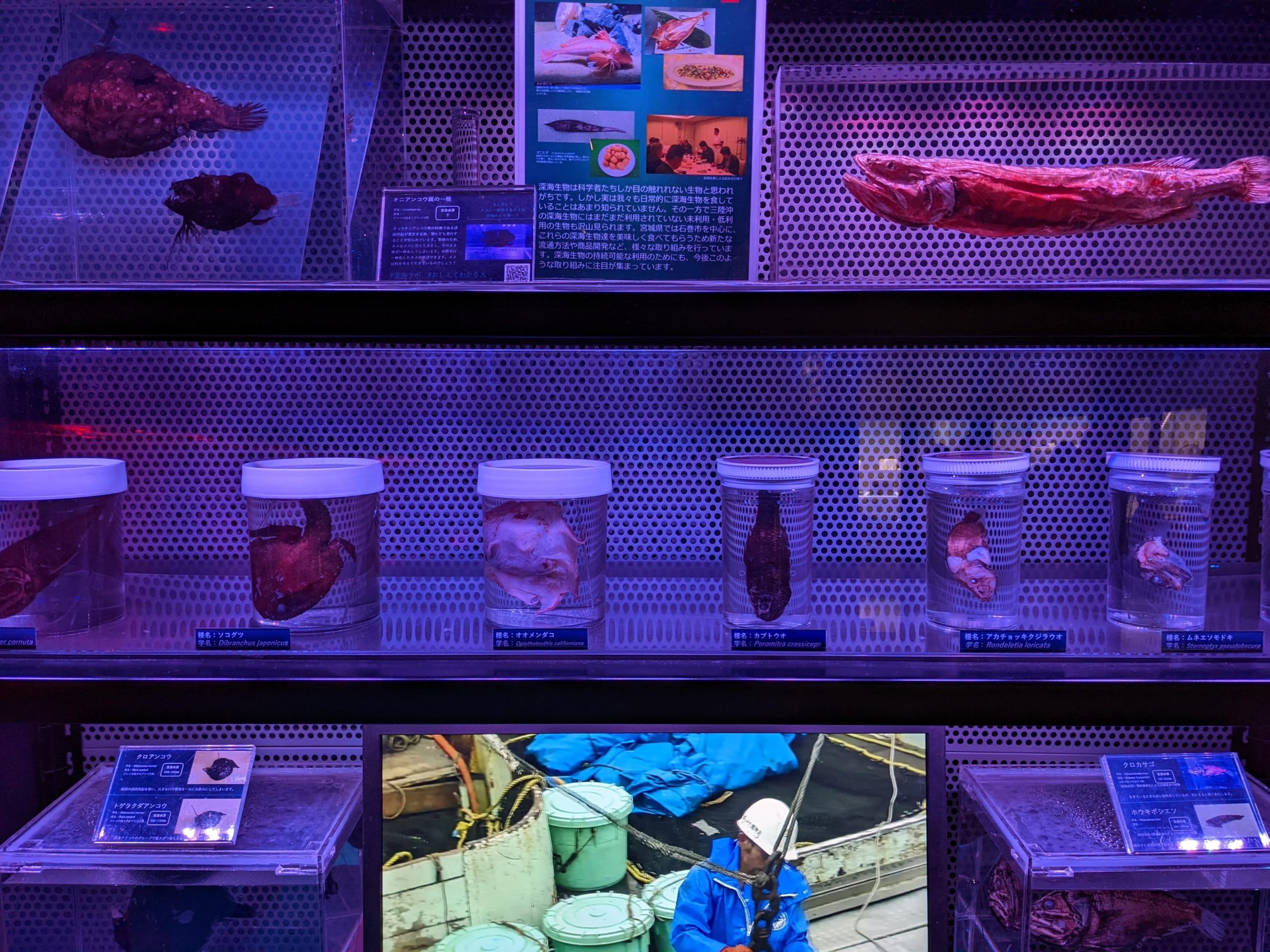 スペース的にはちょっとせまめなんですが、サメばっかりいて最高でしたね。終盤にサメに襲われた時は?というパネルがあったりしました。