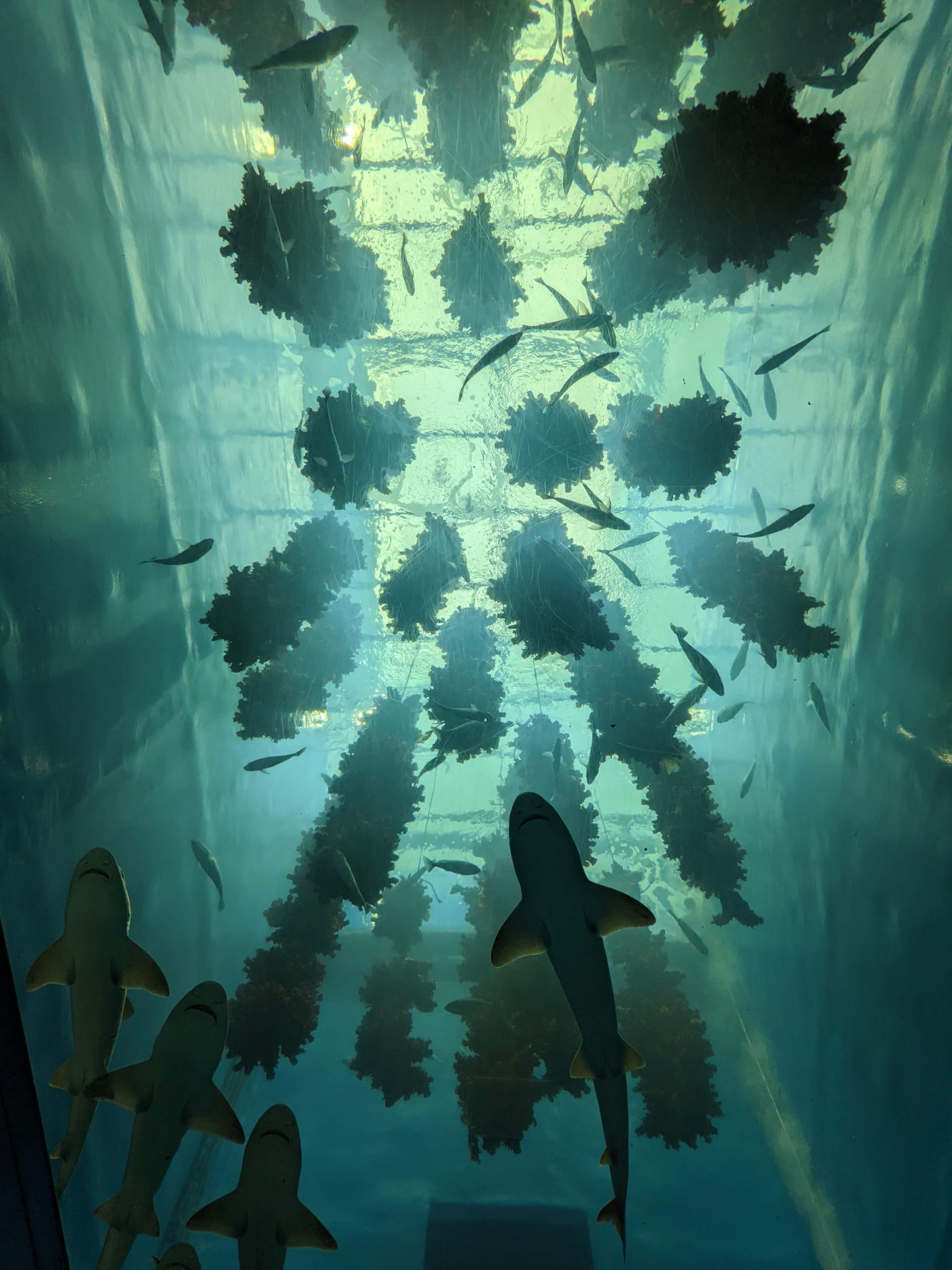 自然光が入ってる水槽のようで真昼にいくとキラキラしてそうですね!夕方にいったので光の量がちょっと少なめでしたが時間帯、季節によって変わる水槽いいぞ。